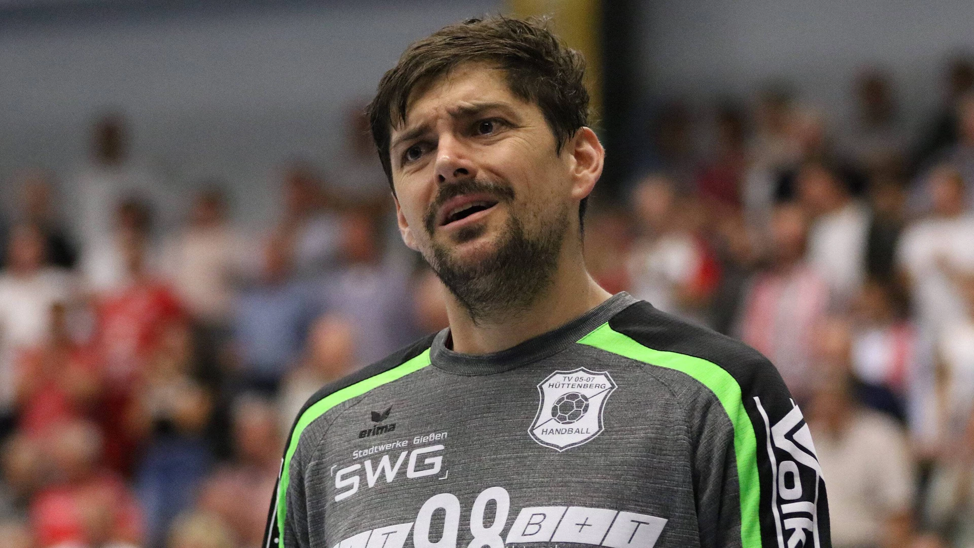 Hüttenbergs Keeper Nikolai Weber wird im Spiel gegen Emsdetten voll im Gesicht erwischt. Zum Glück kann er aber direkt wieder aufstehen und weiterspielen. Sportdeutschland.TV zeigt die komplette 2. Handball Bundesliga live und on demand.
