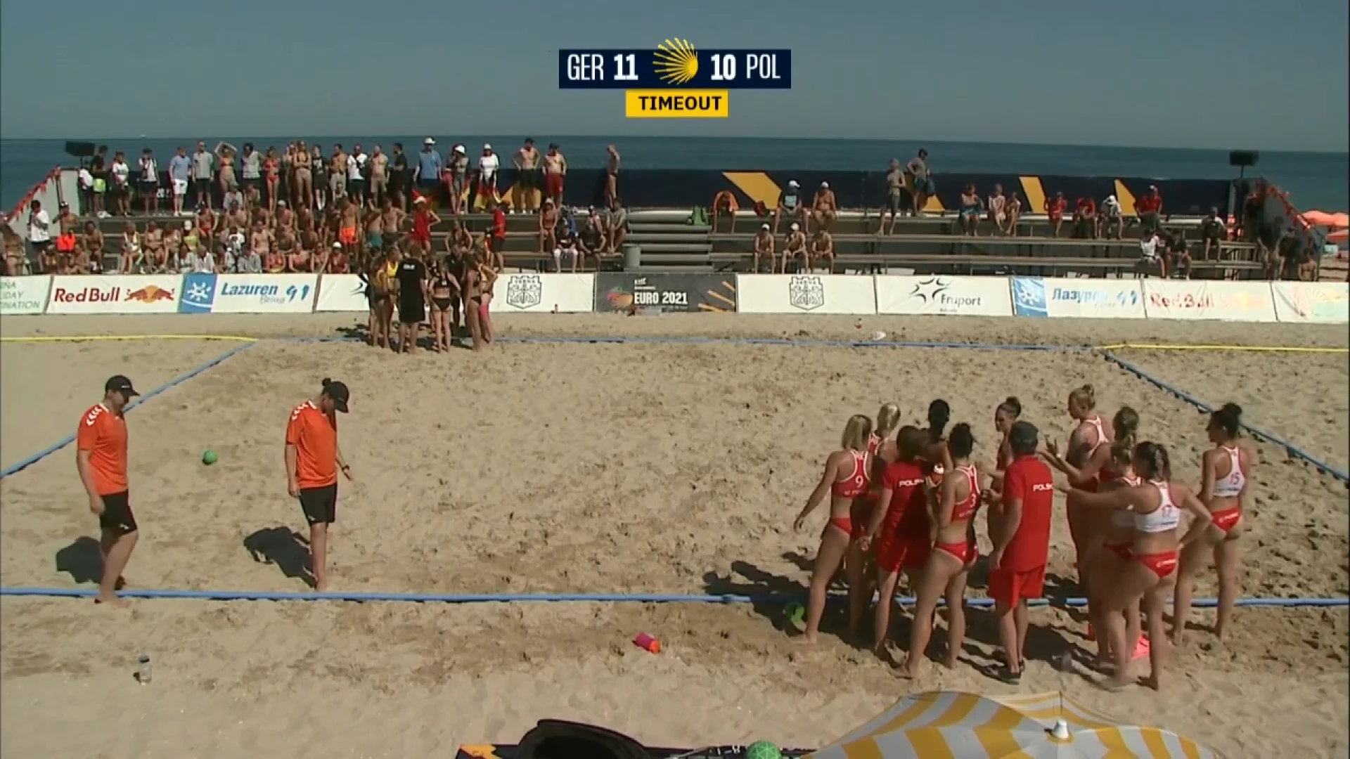 Highlight vom Video-Livestream der Gruppenspiele des vierten Tages der EHF Beach Handball EURO 2021 in Bulgarien am 16.07.2021 - Deutschland vs. Polen.