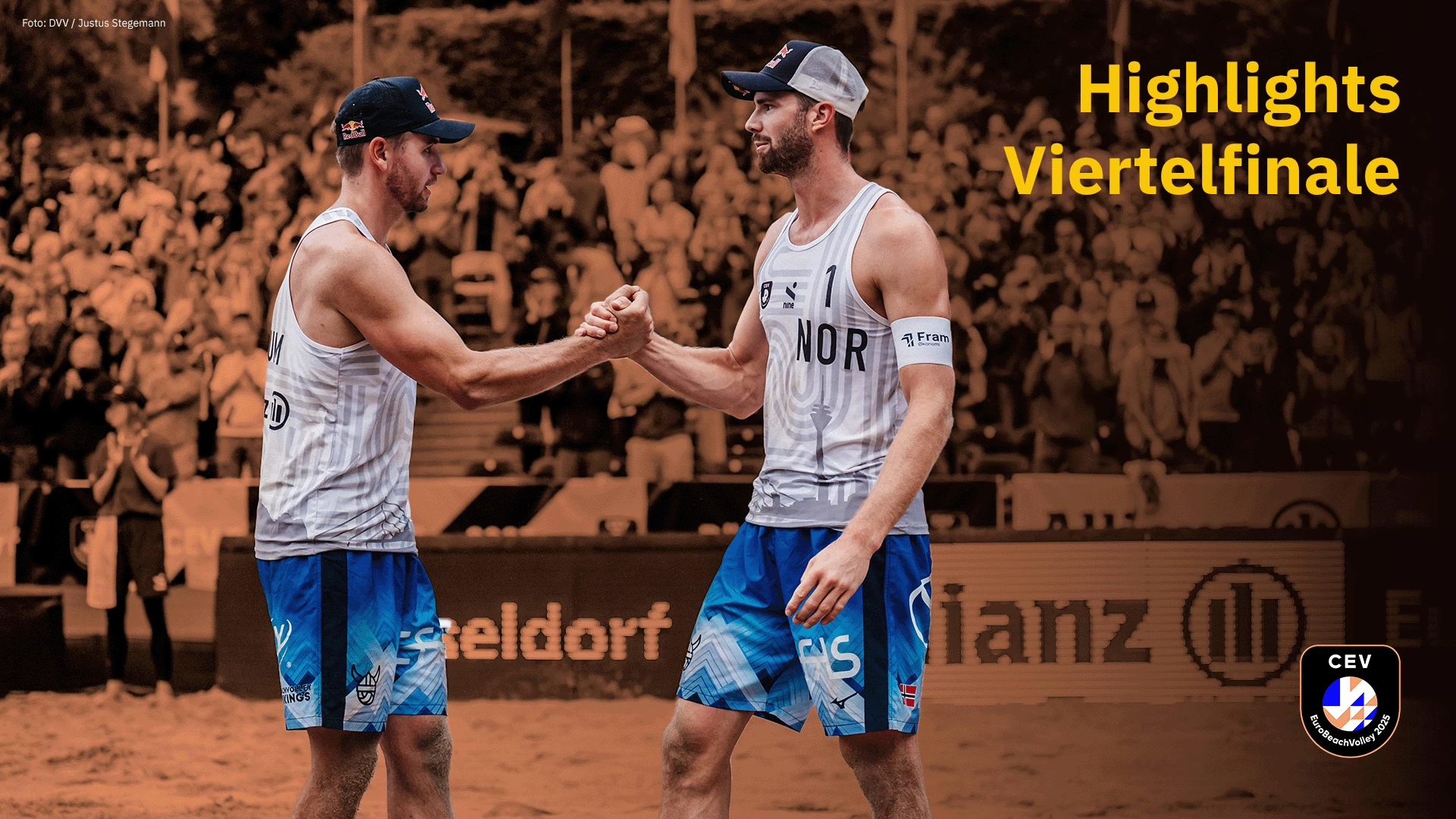 Highlights des Männer Viertelfinal-Matches zwischen Mol/Sorum (NOR) vs. Hammerberg/Berger (AUT) auf dem Center Court in Düsseldorf im Rahmen der Beachvolleyball Europameisterschaft 2025 am 02.08.2025 #BeachEuro2025#beachvolleyball#highlightsbeacheuro25
