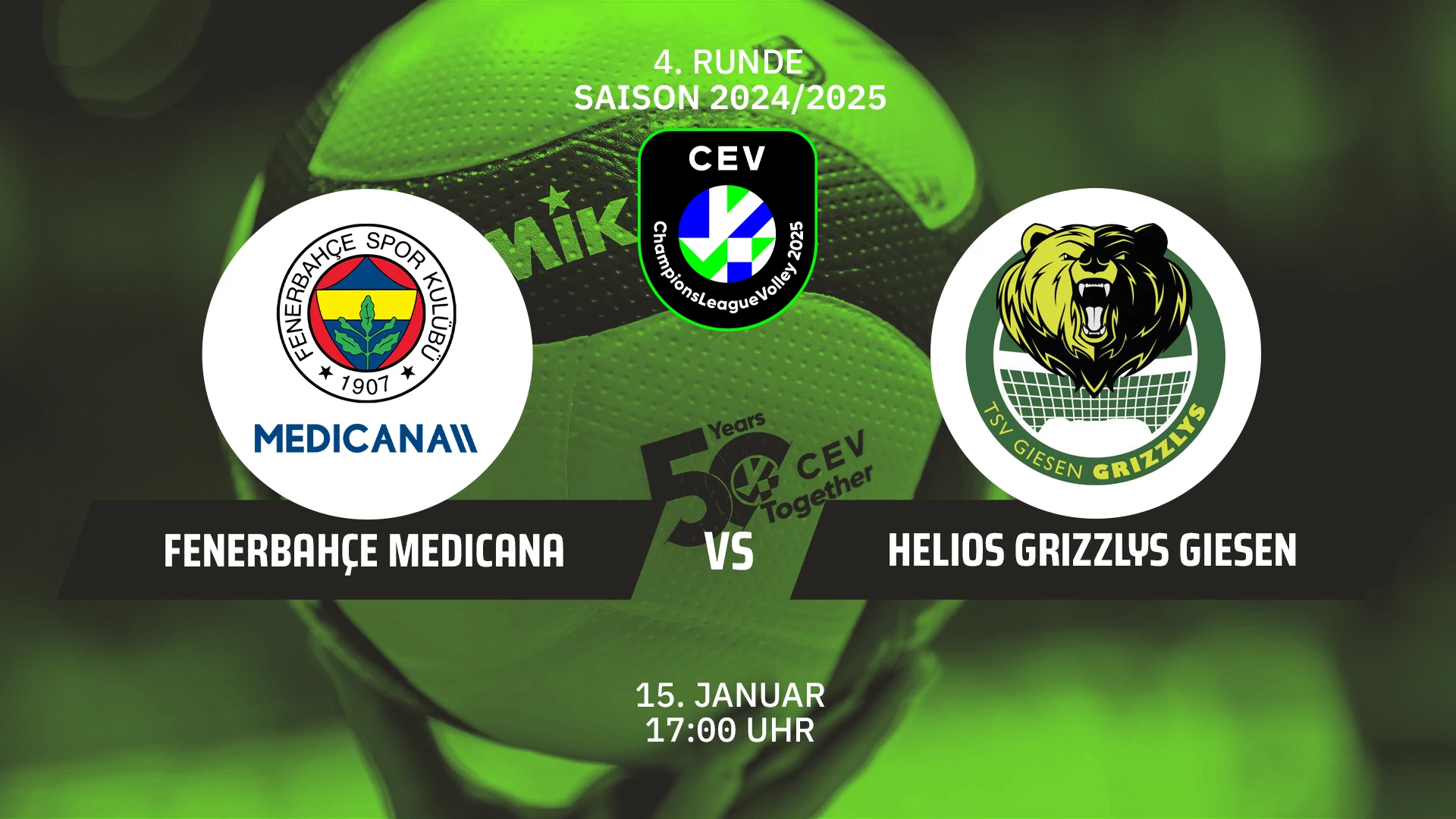 Video-Livestream der Partie Fenerbahçe Medicana ISTANBUL vs. Helios Grizzlys GIESEN in Runde 4 der CEV Champions League der Männer am 16.01.2024. #volleyball #clvolley #clvolleym #cev @heliosgrizzlys