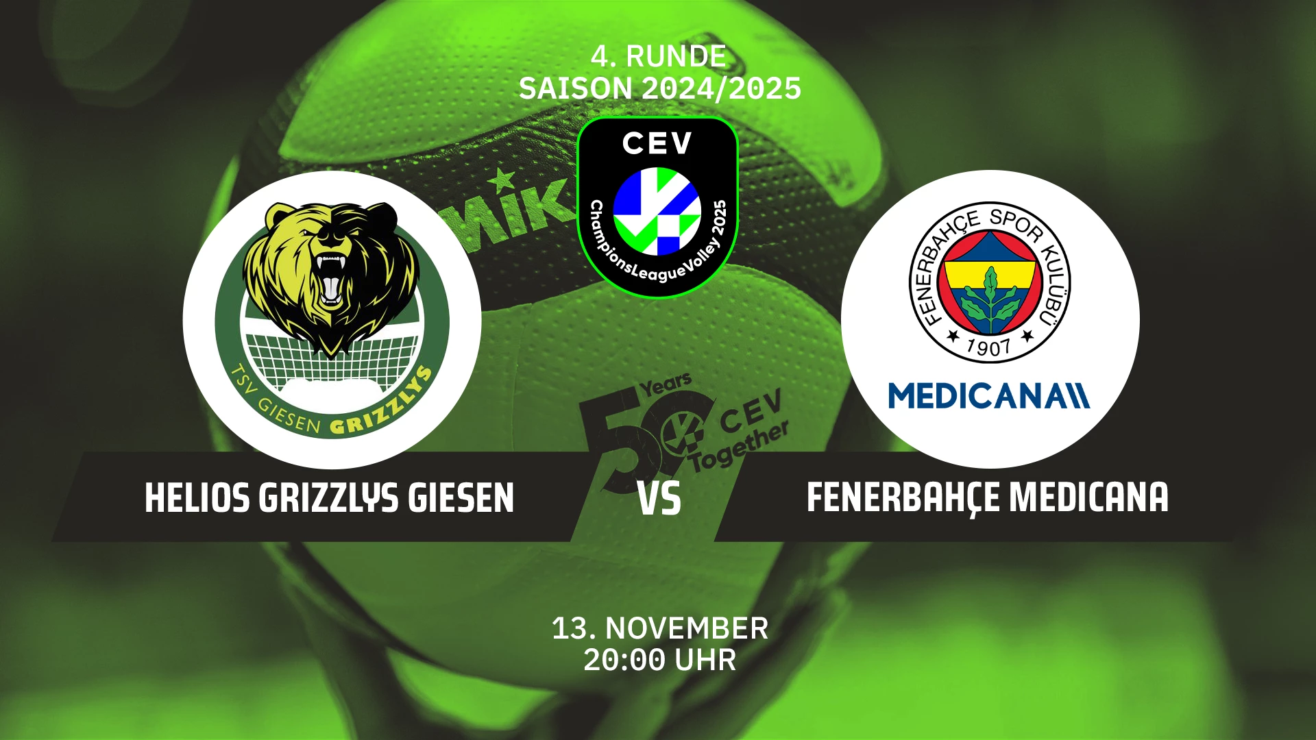 Video-Livestream der Partie Helios Grizzlys GIESEN vs. Fenerbahçe Medicana ISTANBUL in Runde 4 der CEV Champions League der Männer am 13.11.2024. #volleyball #clvolley #clvolleym #cev @heliosgrizzlys