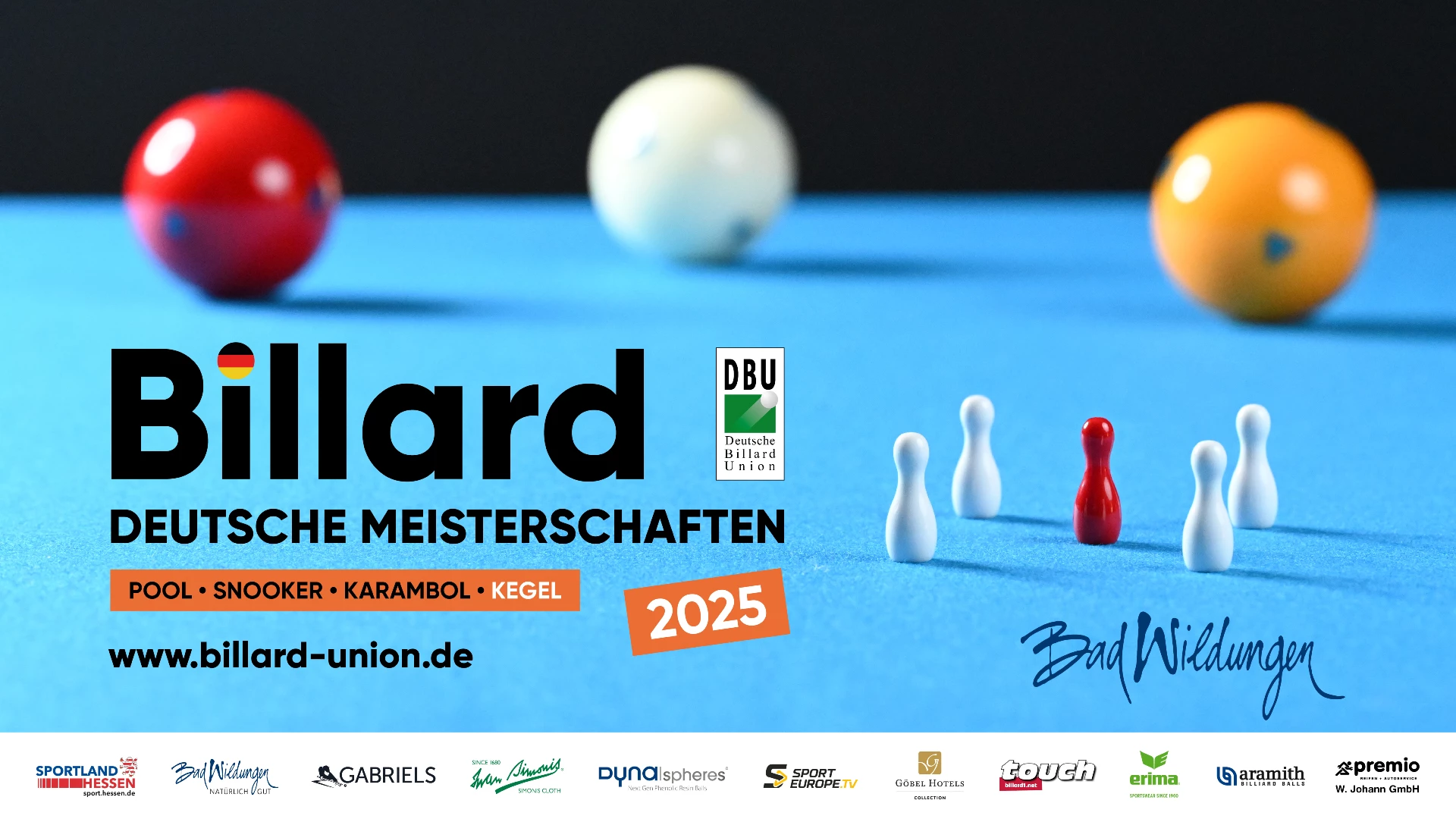 Mehr als 500 Starter*innen nehmen am Großevent der Deutschen Billard-Union teil und küren vom 14. bis 23. November 2025 in der Wandelhalle in Bad Wildungen die neuen Champions im Pool, Snooker, Karambolage & Kegelbillard. 📺 Heute gibt es hier auf Sporteurope.tv im 5-Kegel-Billard die letzten Vorrundenpartien sowie die Finalrunden bis zum Endspiel zu sehen. 🕒 Den Sendeplan für alle drei Livestream-Tische und aktuelle Informationen findet ihr auf der DBU-Mediaseite unter: 👉 https://billard1.net/deutsche-meisterschaften-2025/