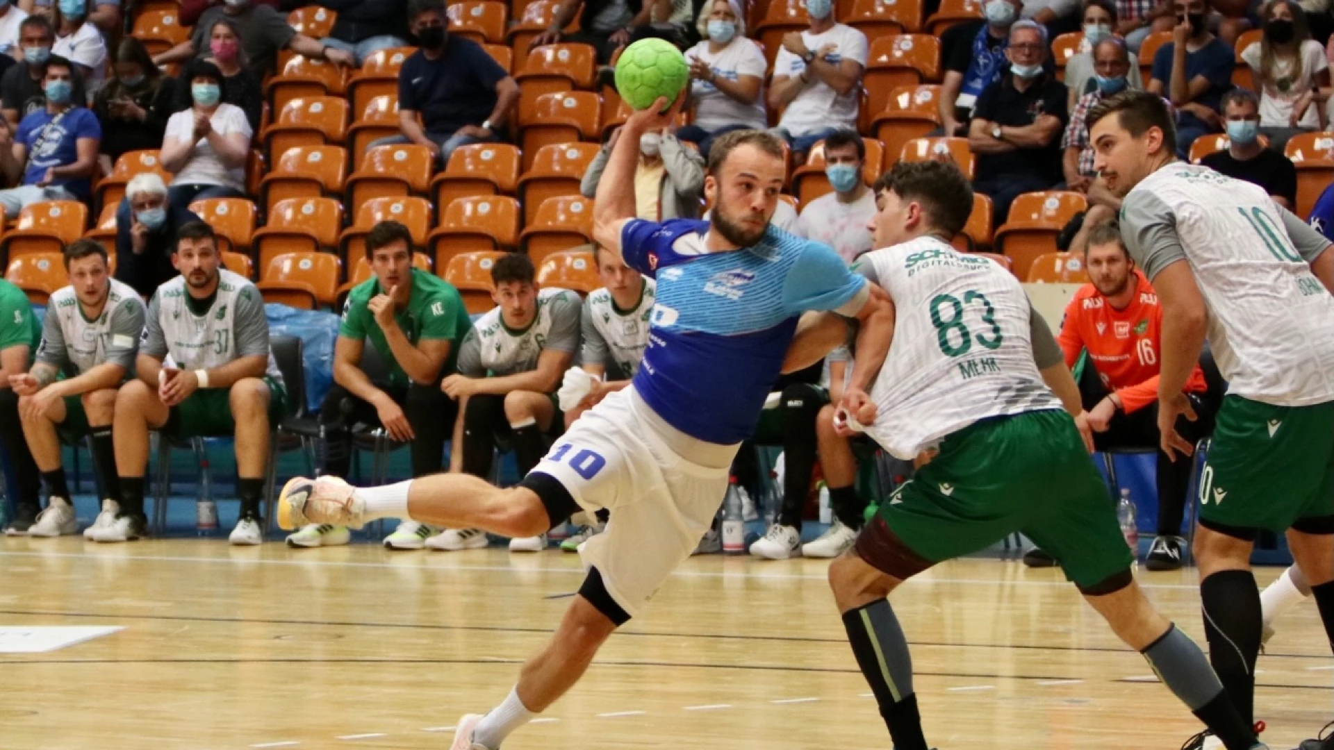 Pressekonferenz mit den beiden Trainern Uwe Jungandreas (DRHV 06) und Julian Thomann (DJK Rimpar) nach dem Spiel vom 12. September 2021 in der Anhalt-Arena. Das Spiel zum Saisonstart in der 2. Handball-Bundesliga gewannen die Gäste aus Unterfranken mit 25:24 (10:12).