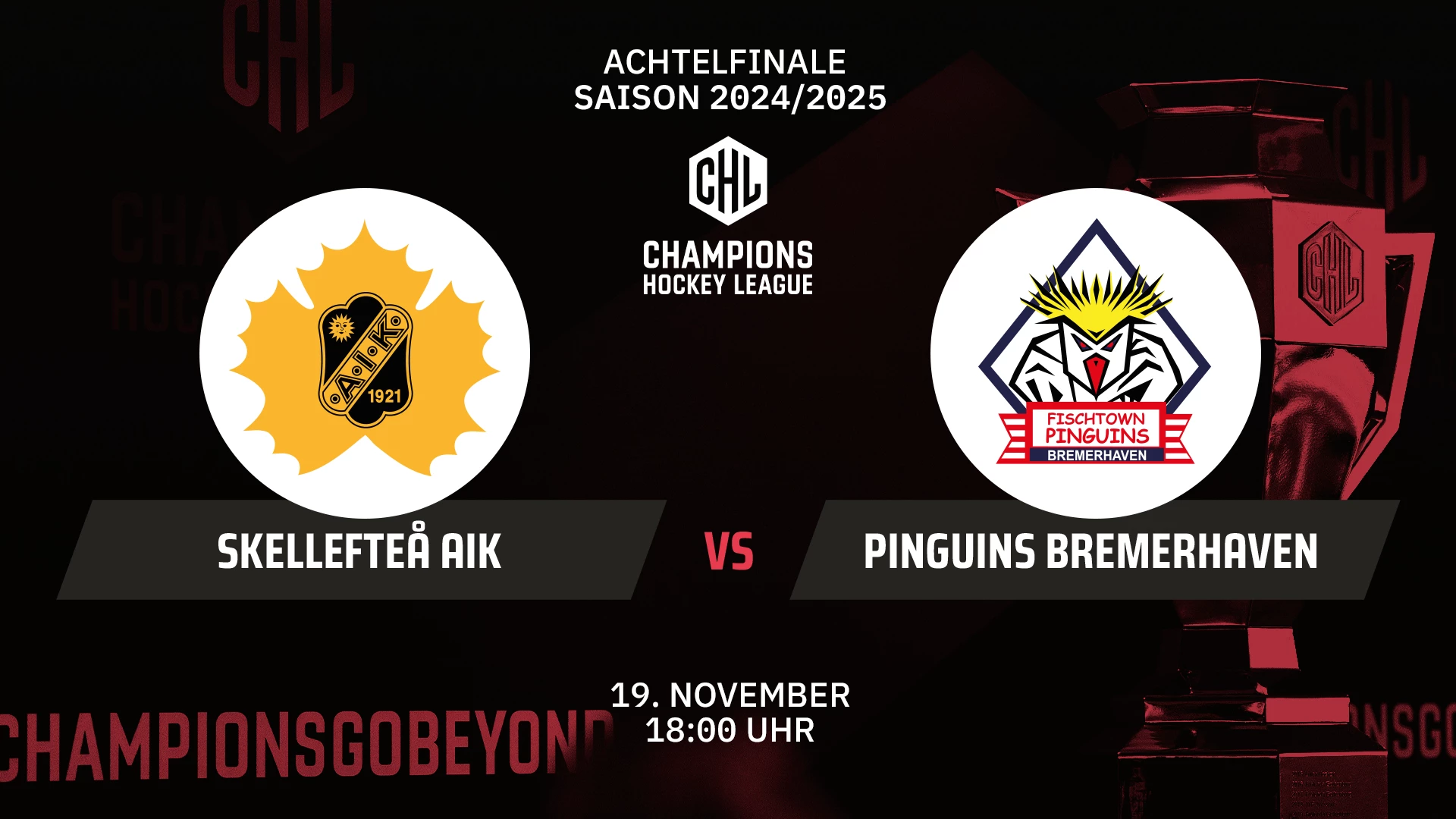 Video-Livestream des Spiels Skellefteå AIK vs. Pinguins Bremerhaven in der Champions Hockey League am 19.11.2024. #chl #eishockey #icehockey #championshockeyleague @skellefteaaik @pinguins-bremerhaven