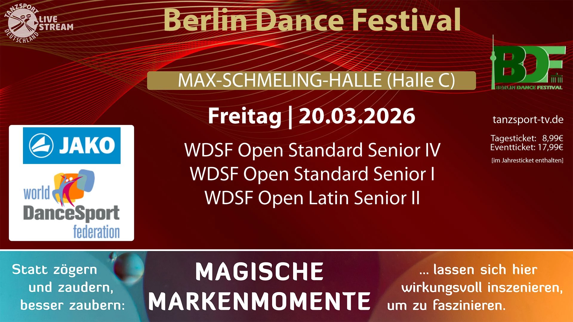 Um den Livestream (live oder on-demand) anschauen zu können, kann das "Eventticket BDF 2026" genutzt werden. Mit diesem Eventticket können alle Streams des Berlin Dance Festivals 2026 abgerufen werden.