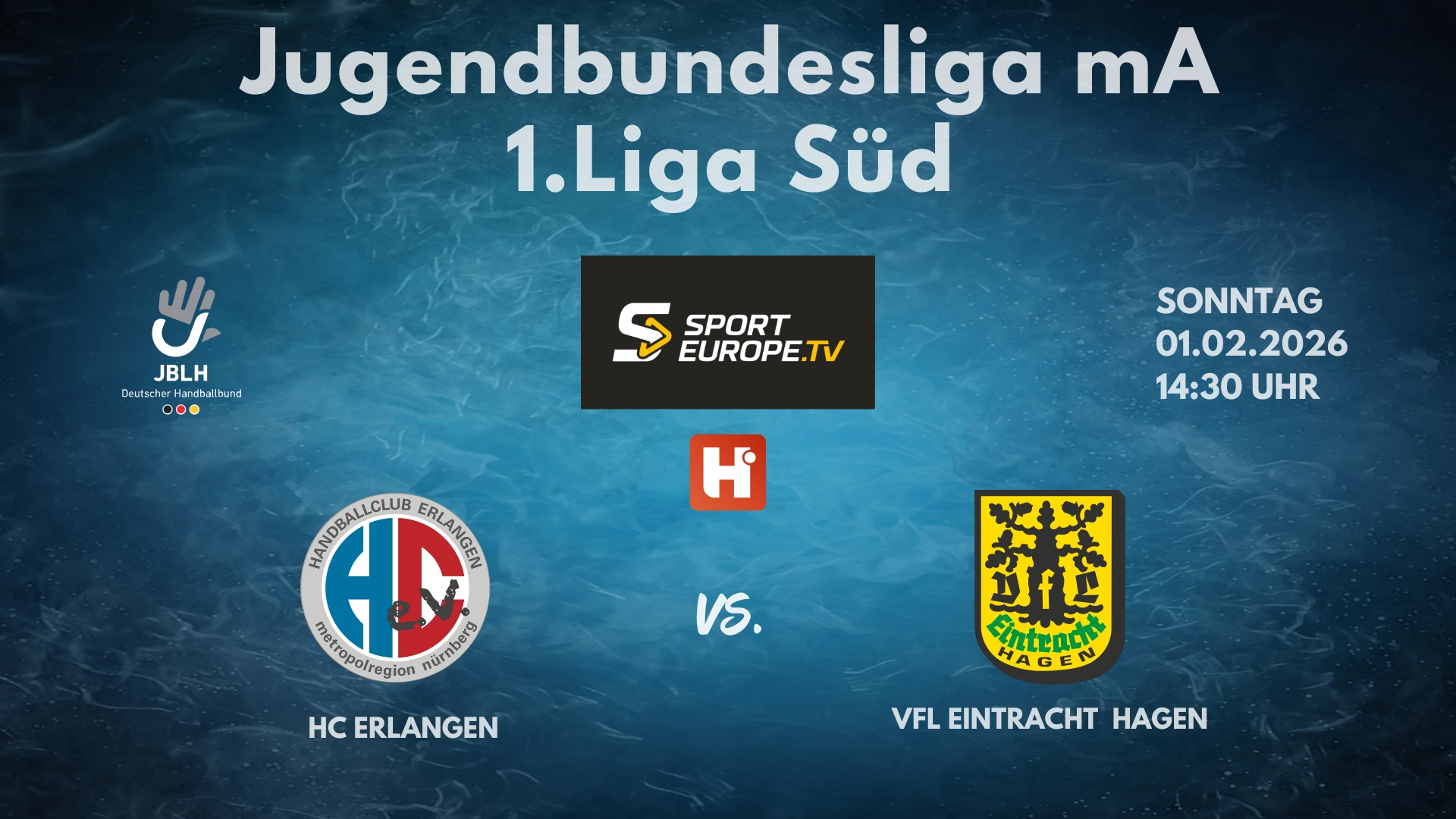 Video-Livestream der Partie HC Erlangen vs. VfL Eintracht Hagen in der Jugendhandballbundesliga mA am 1.2.2026. @hcerlangenev-u19m @vfleintrachthagen-u19m @handball-net @deutscherhandballbund @jblhmaennlich #handball #jblh #dhb #Liga1Sued #HCE