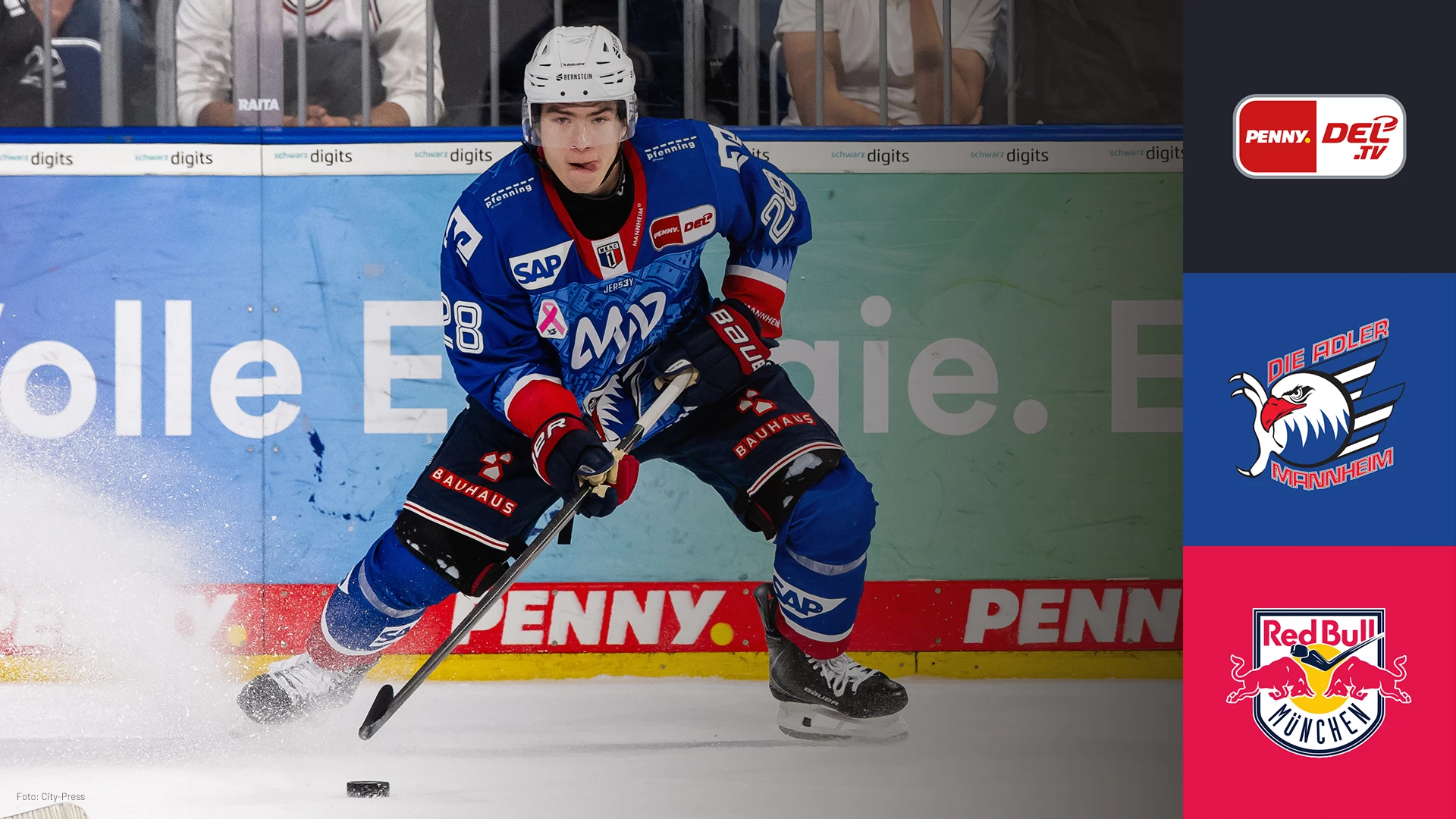 Watch the game Adler Mannheim vs. EHC Red Bull München on the third semifinals game of the PENNY DEL on April 12 2026 live. Für deutsche Übertragungen besuche das Profil der DEL auf unserer Plattform. #delinternational #eishockey #icehockey #pennydel #adler-mannheim #rb-muenchen