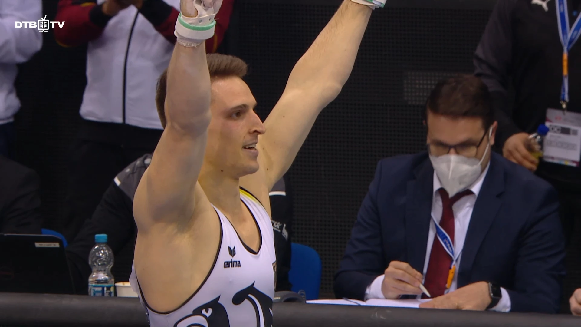 Carlo Hörr bei den Einzelfinals der Senioren mit seiner Gold-Vorstellung am Reck des EnBW DTB Pokals 2022 in Stuttgart am 19.03.2022. @dtb #turnen