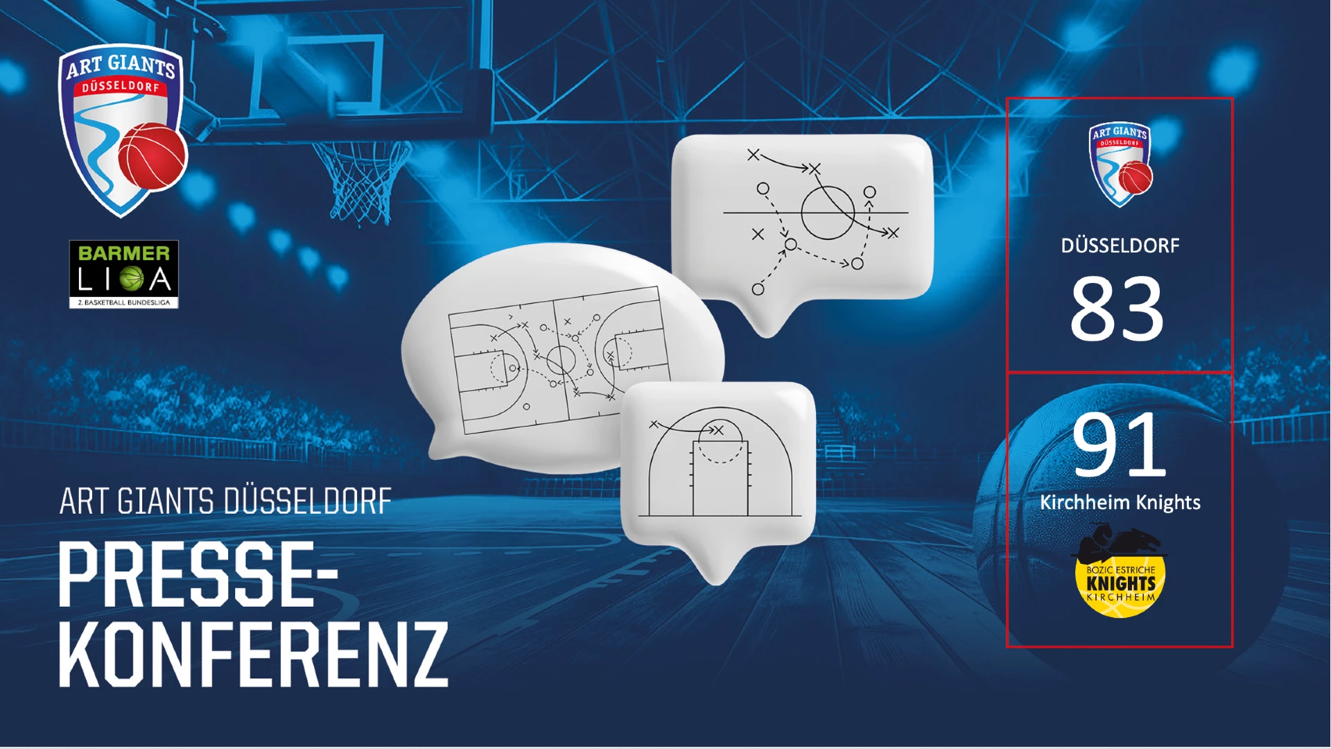 Pressekonferenz des Basketballspiels ART Giants Düsseldorf vs. Bozic Estriche Knights Kirchheim aus der BARMER 2. Basketball Bundesliga vom 32. Spieltag am 12.04.2025. @barmer-2-basketball-bundesliga #basketball #proa #barmer2basketballbundesliga @art-giants-duesseldorf @bozic-estriche-knights-kirchheim