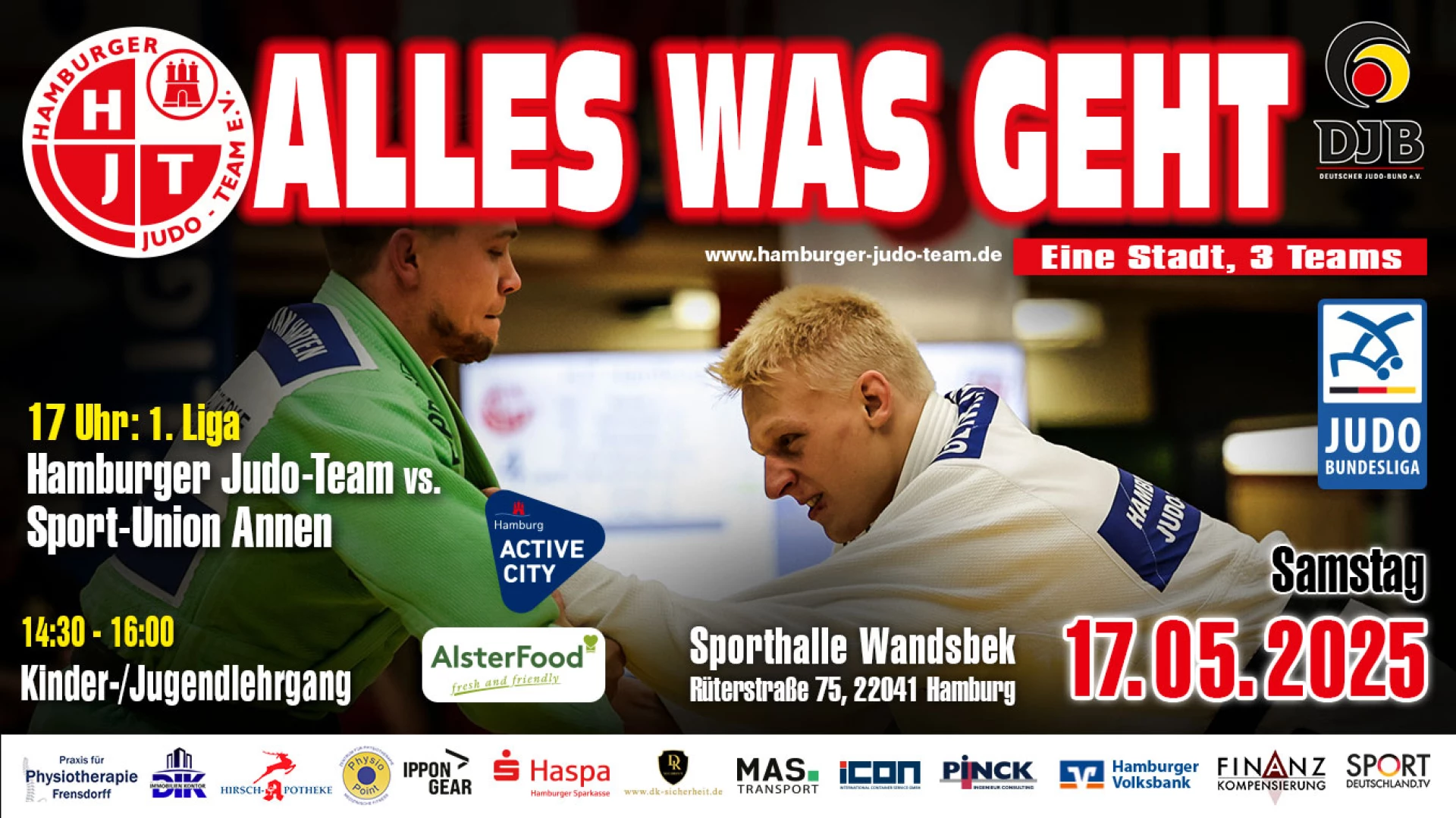 Um 17:00 Uhr begegnen sich Sport-Union Annen und das Hamburger Judo-Team. Wir beginnen die Übertragung bereits gegen 16:45 Uhr und wünschen gute Unterhaltung!