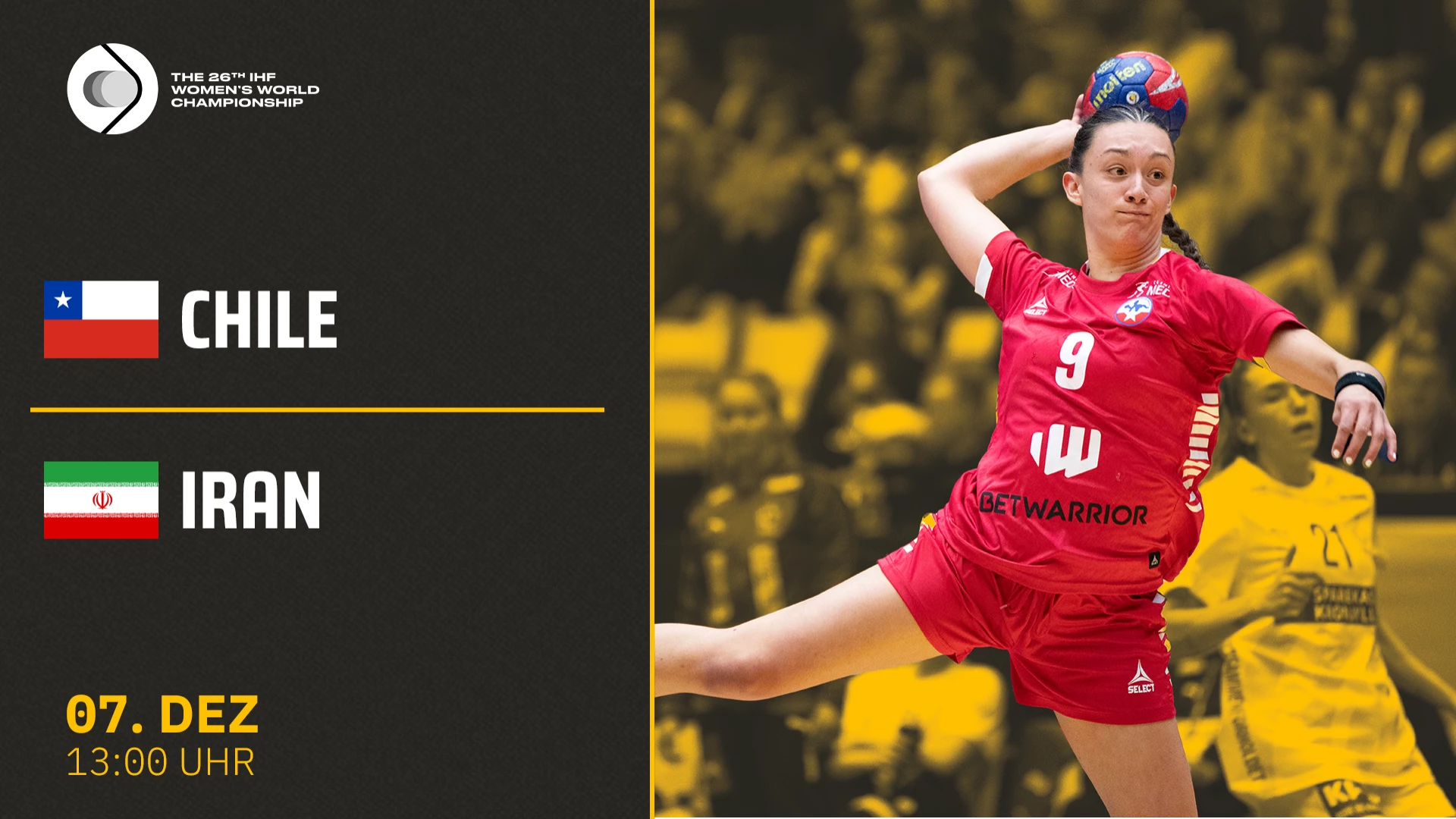 Video-Livestream des Presidents Cup der Partie Chile vs. Iran im Rahmen der Handball-WM der Frauen 2023 am 07.12.2023. @sportdeutschlandtv #handball #DENNORSWE2023 #handballwmfrauen2023