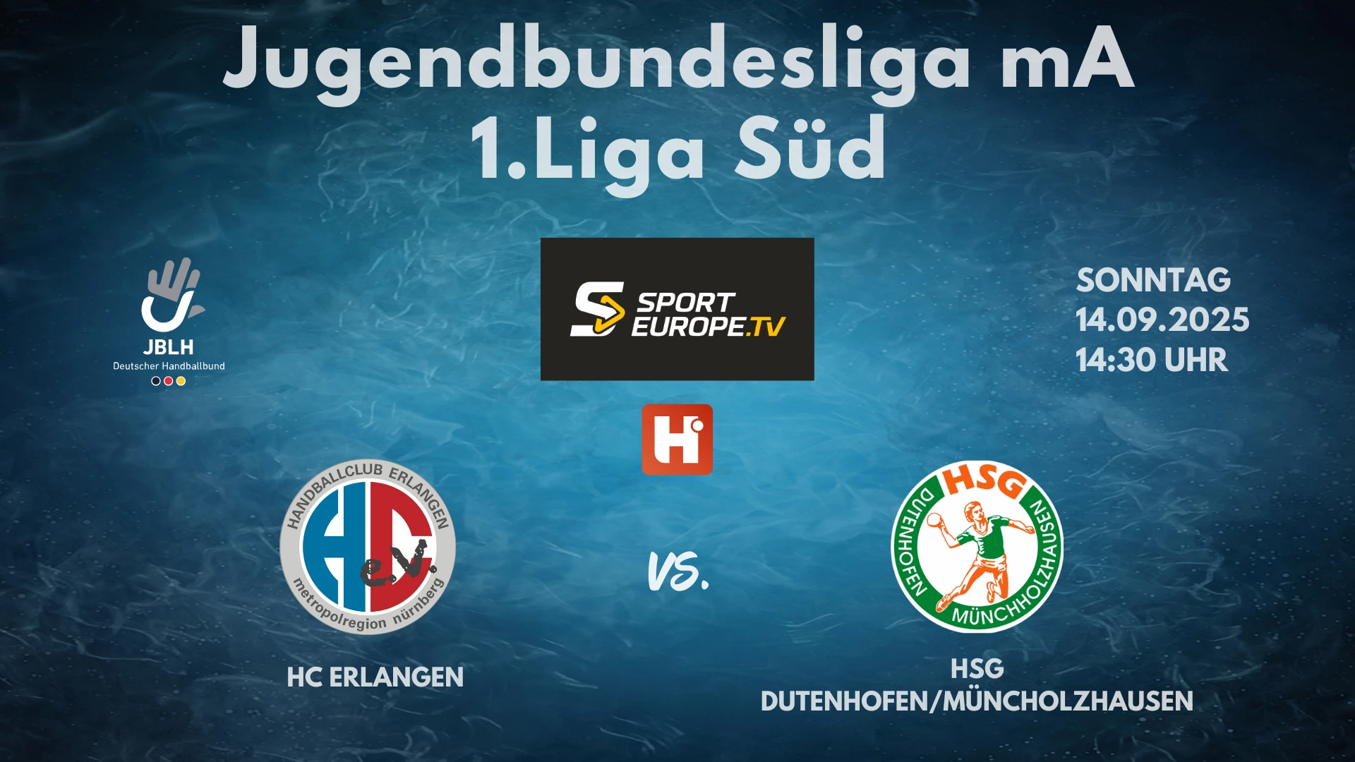 Video-Livestream des Spiels HC Erlangen vs. HSG Dutenhofen/Münchholzhausen in der 1. Liga JBLH Süd am 14.09.2025. Die Clubs werden an den Erlösen finanziell beteiligt. #handball #jblh #dhb #Liga1Sued @handball-net @deutscherhandballbund @jblhmaennlich @hcerlangenev-u19m @hsg-dutenhofen-muenchholzhausen-u19m