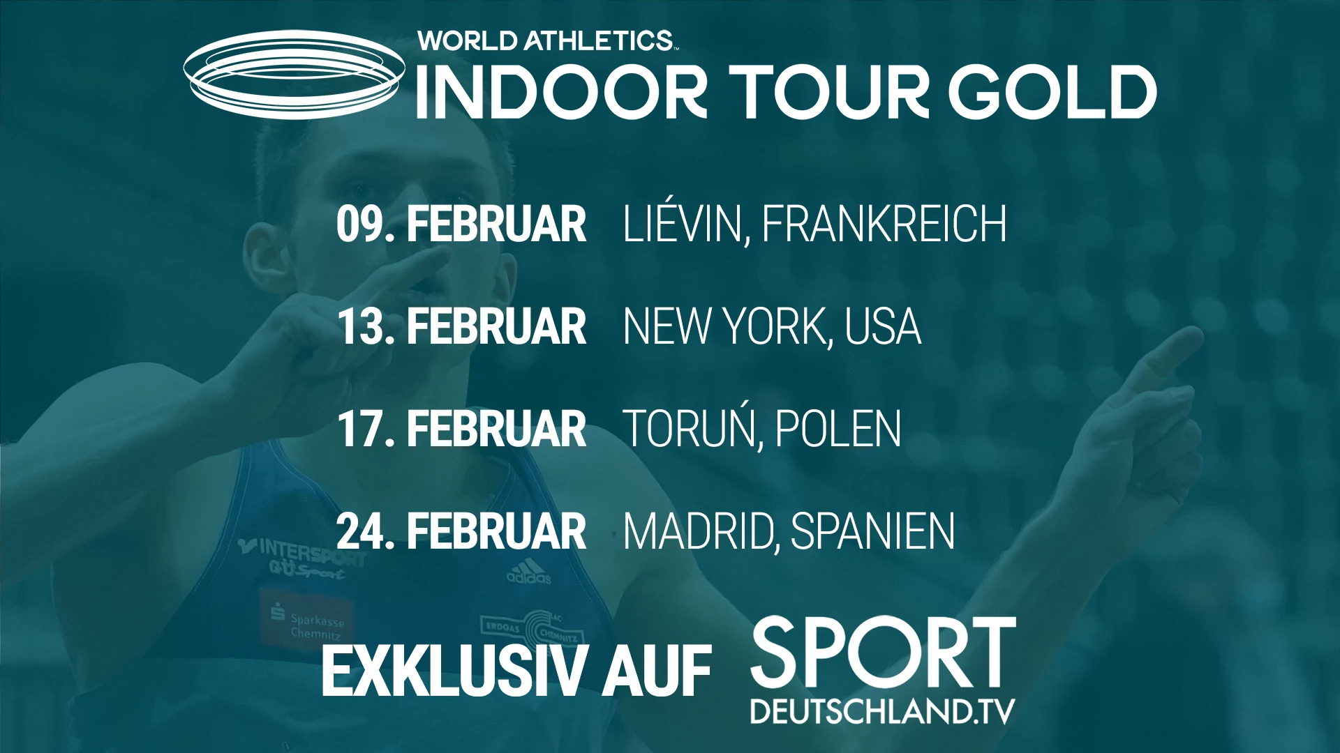 Frauen: 60m, 800m, 3000m/5000m, Stabhochsprung, Dreisprung, Kugelstoßen
