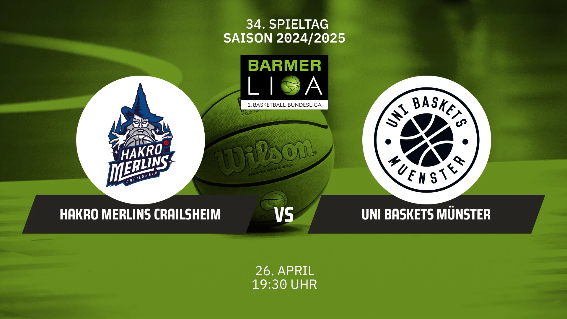 Video-Livestream des Basketballspiels HAKRO Merlins Crailsheim vs. Uni Baskets Münster aus der BARMER 2. Basketball Bundesliga vom 34. Spieltag am 26.04.2025. @barmer-2-basketball-bundesliga #basketball #proa #barmer2basketballbundesliga @hakromerlins @uni-baskets-muenster