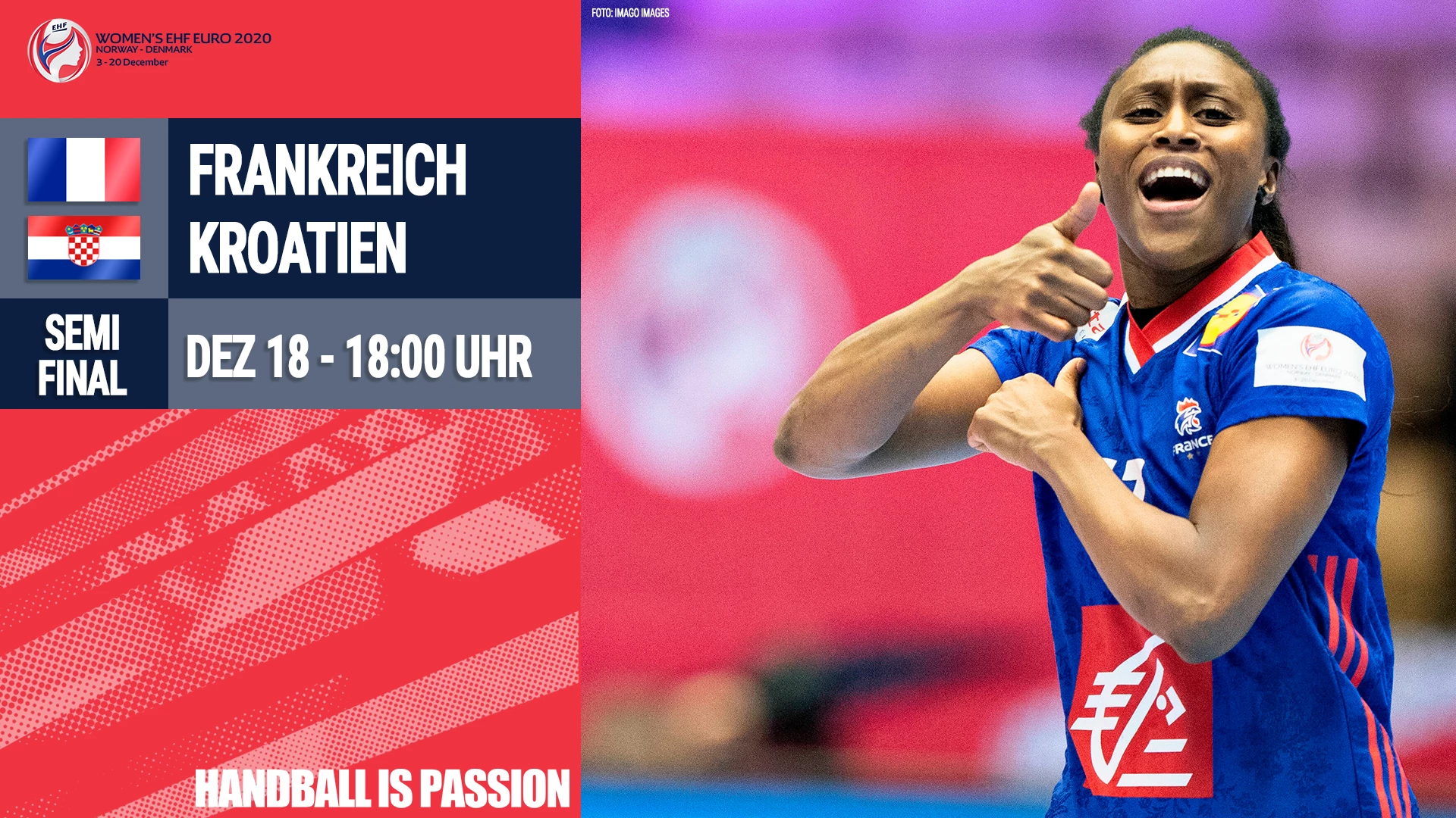 Video-Livestream des ersten Halbfinals zwischen Frankreich und Kroatien am 18.12.2020 in Trondheim.