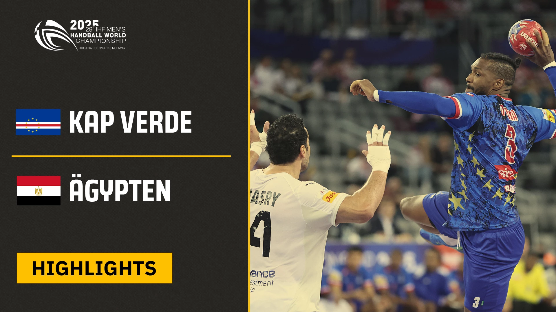 Video-Highlights des Hauptrundenspiels zwischen Kap Verde und Ägypten im Rahmen der Handball-WM der Männer 2025 am 26.01.2025 um 18:00 Uhr. #handball #handball #handballwmmaenner2025 #CRODENNOR2025 @sportdeutschlandtv #maennerwmhighlights