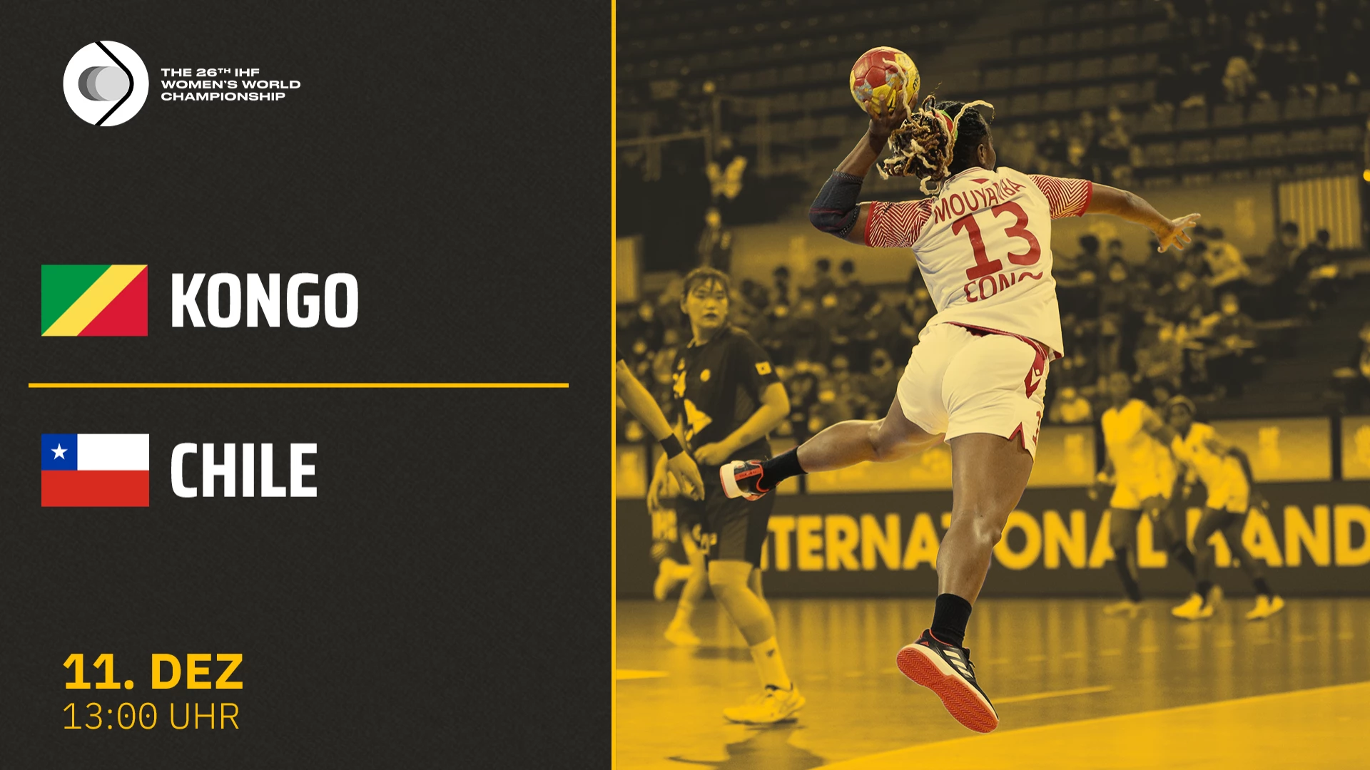 Video-Livestream des Presidents Cup der Partie Kongo vs. Chile im Rahmen der Handball-WM der Frauen 2023 am 09.12.2023. @sportdeutschlandtv #handball #DENNORSWE2023 #handballwmfrauen2023