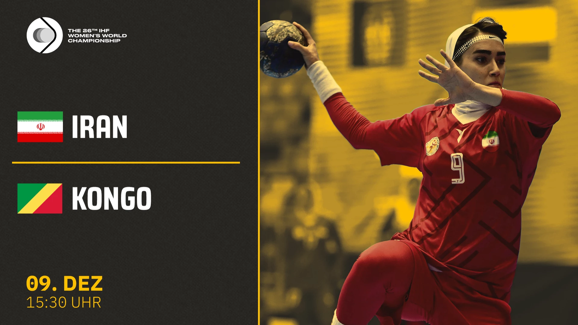 Video-Livestream des Presidents Cup der Partie Iran vs. Kongo im Rahmen der Handball-WM der Frauen 2023 am 09.12.2023. @sportdeutschlandtv #handball #DENNORSWE2023 #handballwmfrauen2023