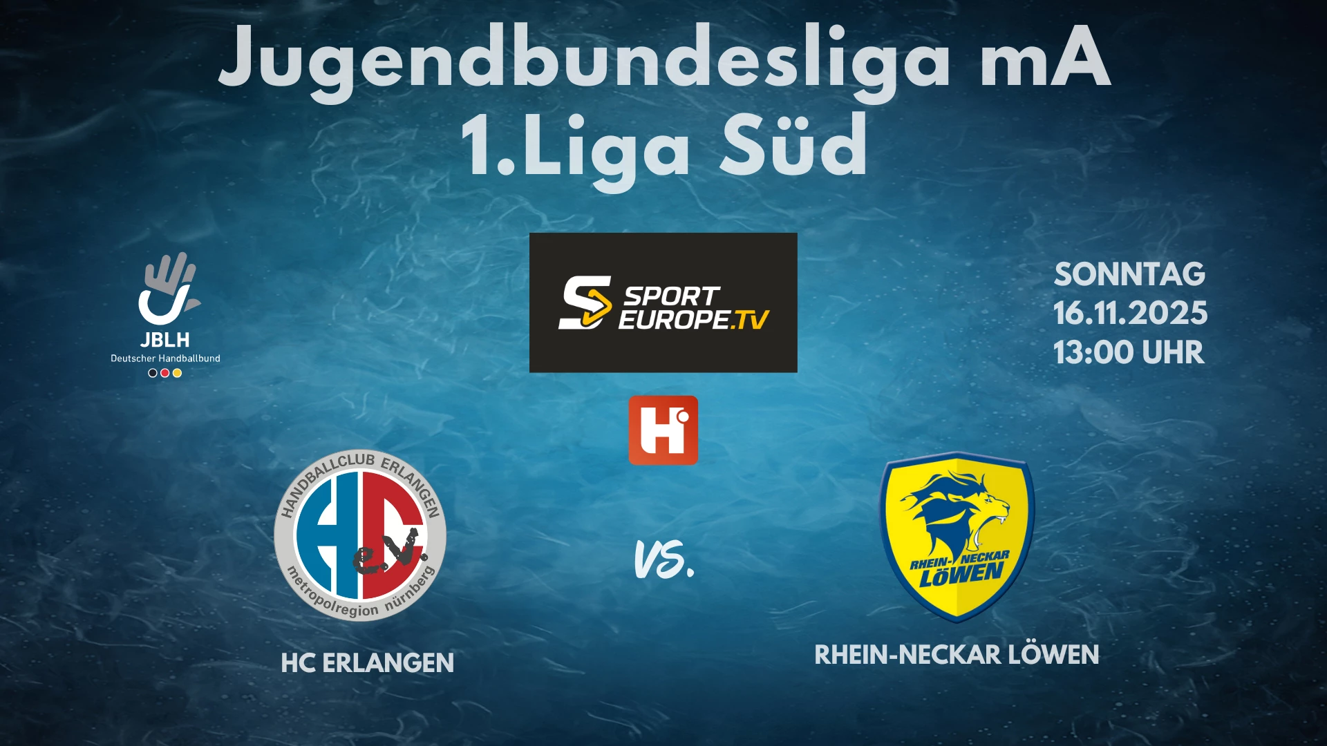Video-Livestream des Spiels HC Erlangen vs. Rhein-Neckar Löwen in der 1. Liga JBLH Süd am 16.11.2025. Die Clubs werden an den Erlösen finanziell beteiligt. #handball #jblh #dhb #Liga1Sued @handball-net @deutscherhandballbund @jblhmaennlich @hcerlangenev-u19m @rhein-neckar-loewen-u19m