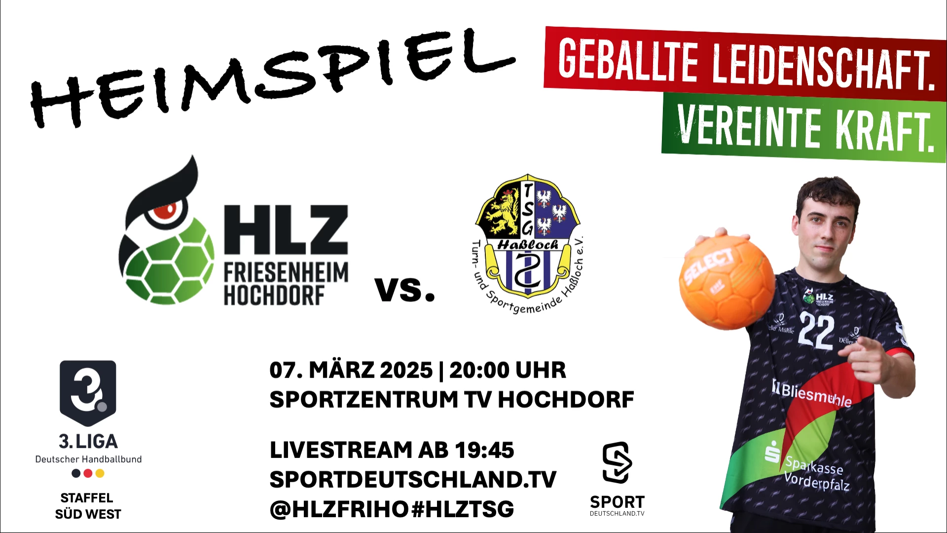 Video-Livestream der Partie HLZ Friesenheim-Hochdorf II vs. TSG Haßloch in Staffel Süd-West der 3. Liga Handball Männer am 22.02.2025 @handball-net @deutscherhandballbund @3-handball-liga #handball #liga3 #dhb #staffel-sued-west @hlzfriho @tsg-hassloch