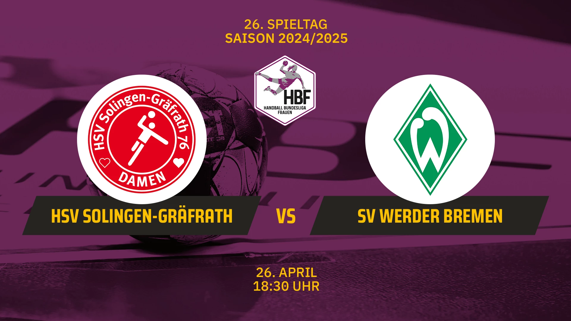Video-Livestream der Partie zwischen HSV Solingen-Gräfrath vs. SV Werder Bremen am 26.04.2025 um 18:30 Uhr am 26. Spieltag in der 2. Handball Bundesliga Frauen. #2hbf #handball @hsv-solingen-graefrath-76-frauen @sv-werder-bremen-frauen @sportdeutschlandtv