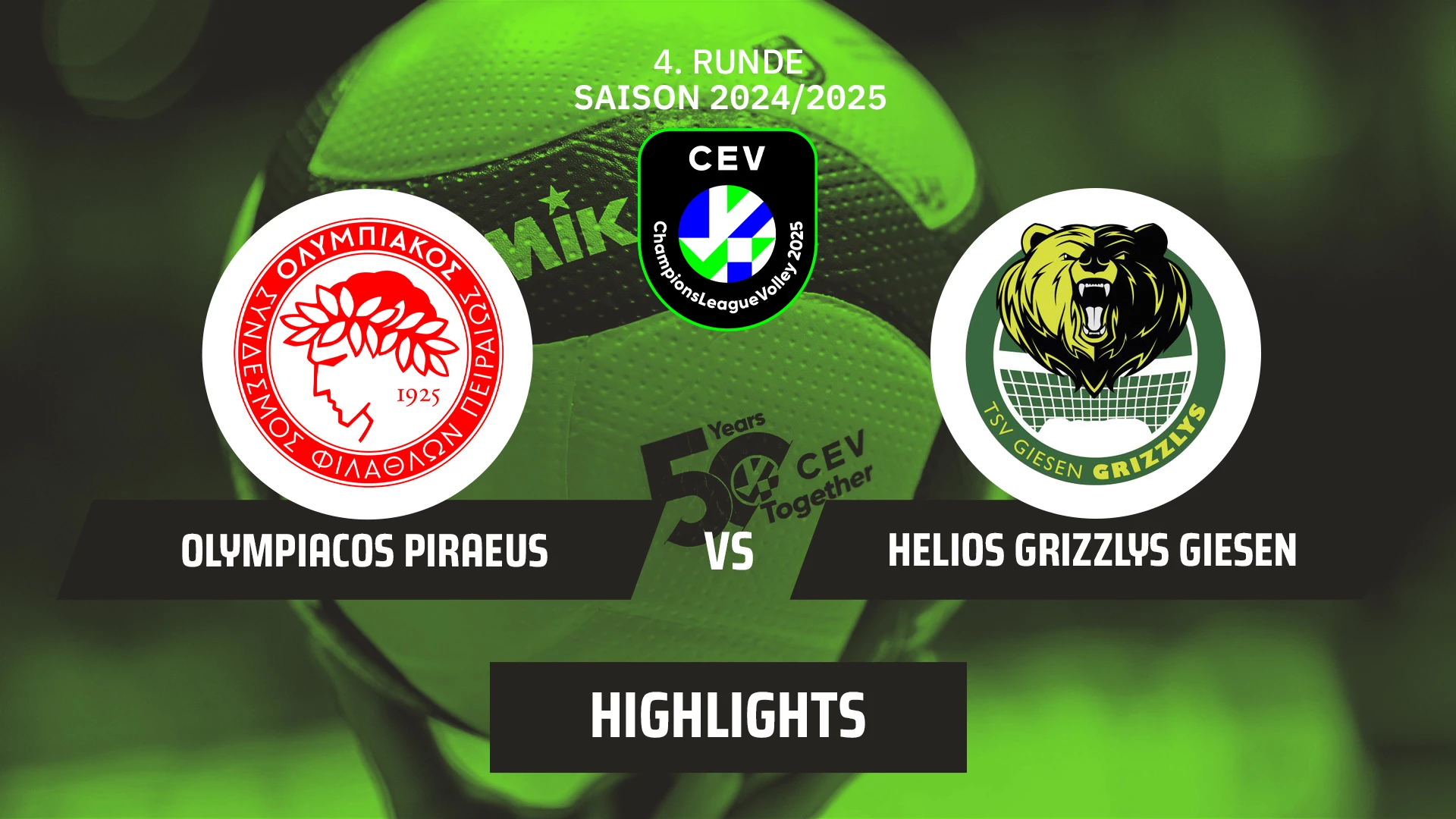 Highlights der Partie Olympiacos PIRAEUS vs. Helios Grizzlys GIESEN in Runde 4 der CEV Champions League der Männer am 20.11.2024. #volleyball #clvolley #clvolleym #cev @heliosgrizzlys