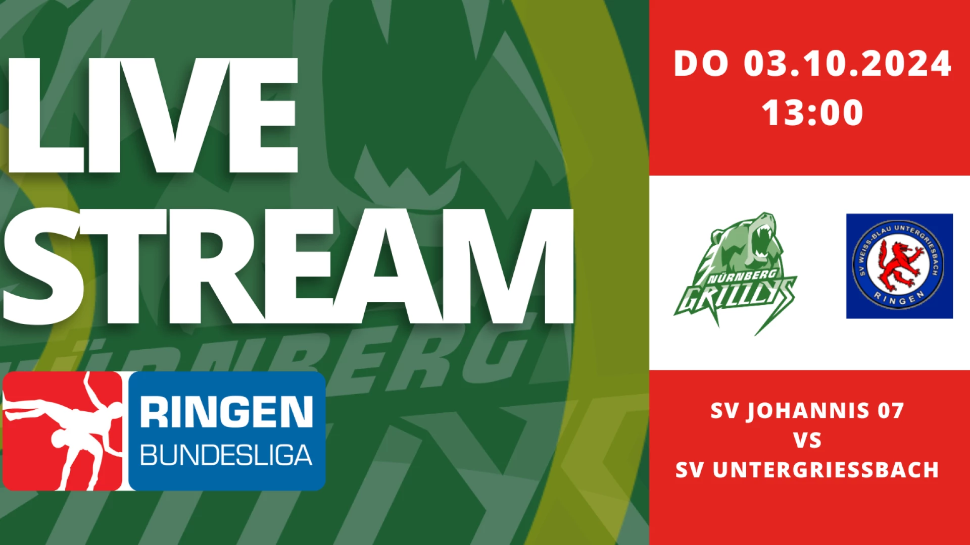 Um 13:00 Uhr ringt die 2. Mannschaft der Nürnberg Grizzlys in der AVIA-Arena. Heute gegen die Gäste vom SV Untergriesbach. #ringen #oberliga