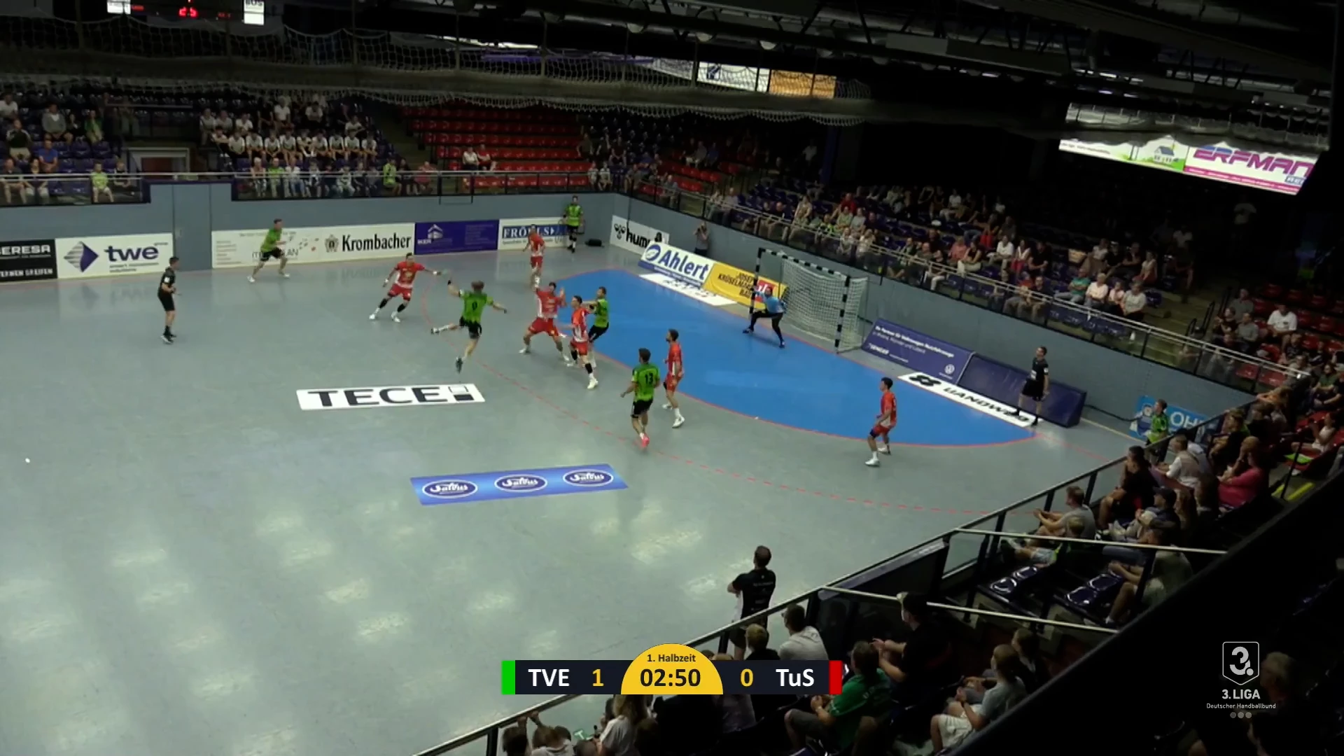 Tobias Reichmanns erster Treffer in der Ems-Halle im letzten Vorbereitungsspiel des TV Emsdetten gegen TUS N-Lübbecke am 26.08.2022. @tus-n-luebbecke @tvemsdetten #heimverein #saisonvorbereitung #saison2022 #testspiel #testspieltag
