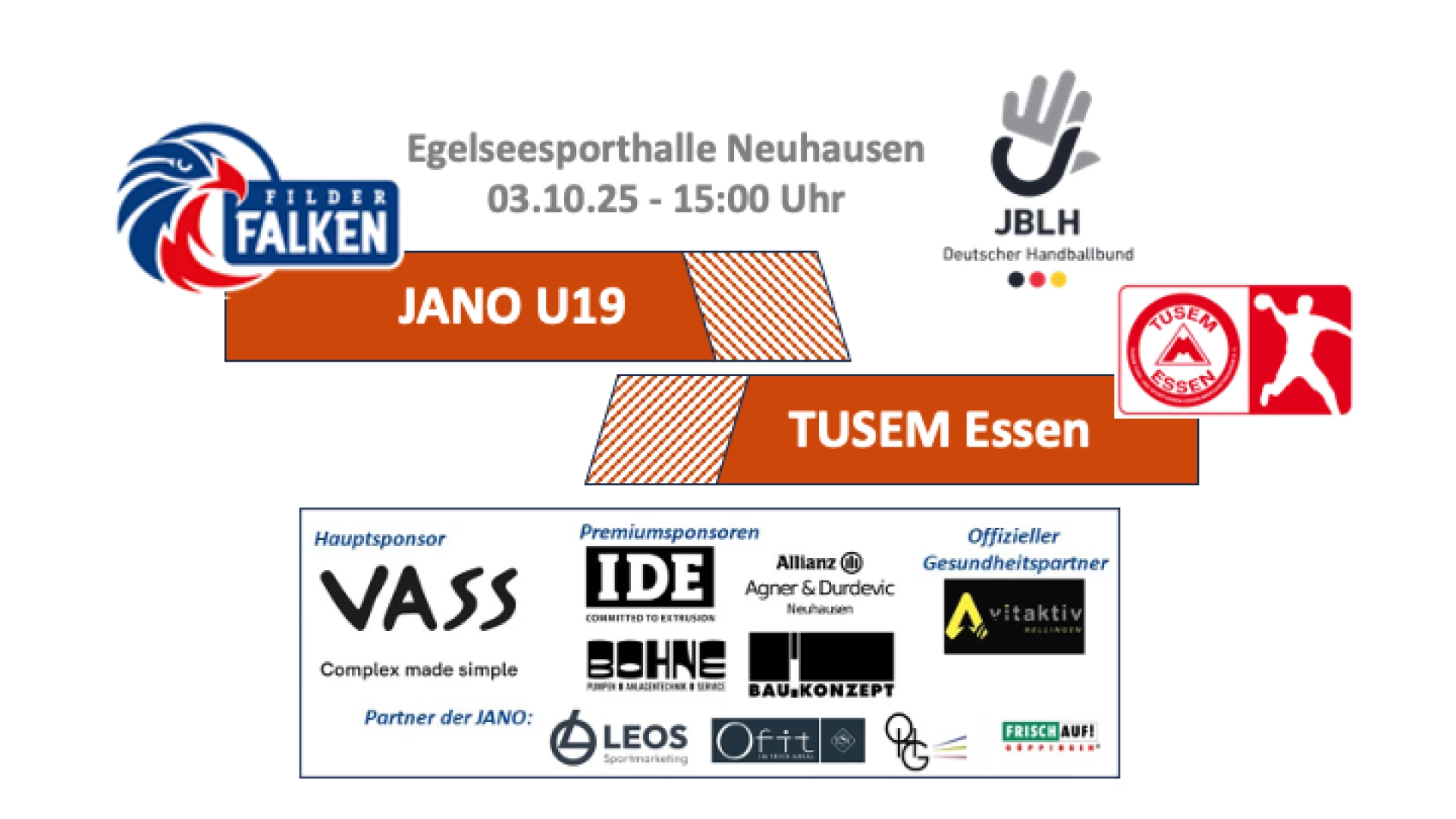 Video-Livestream des Spiels JANO Filder vs. TuSEM Essen in der 1. Liga JBLH Süd am 03.10.2025. Die Clubs werden an den Erlösen finanziell beteiligt. #handball #jblh #dhb #Liga1Sued @handball-net @deutscherhandballbund @jblhmaennlich @jano-filder-u19m @tusem-essen-u19m