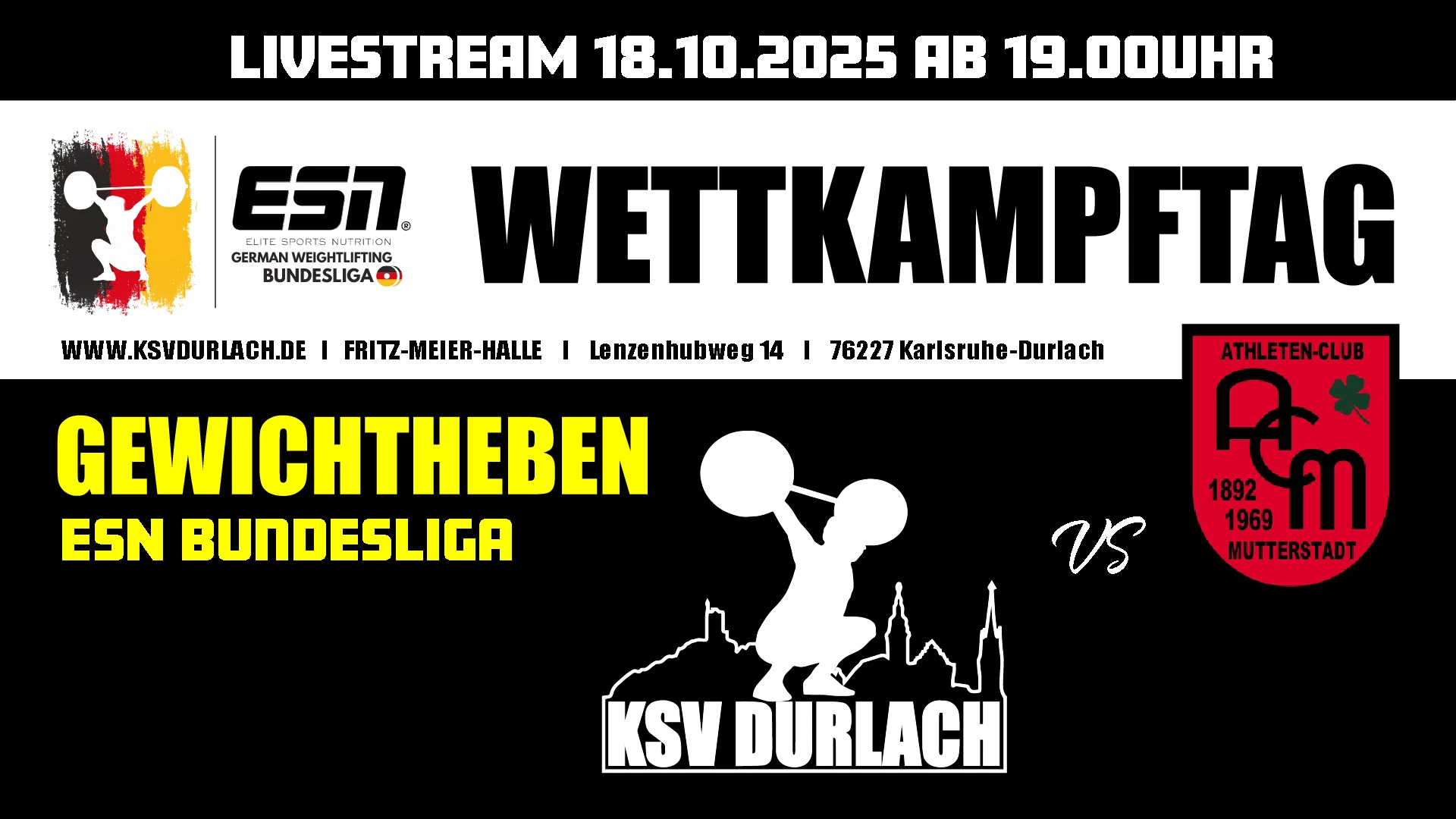 #KSVdurlach #ESNBundesliga #Gewichtheben #Heimkampf #1Bundesliga #ACMutterstadt #Livestream #Wettkampftag #DurlachHebt