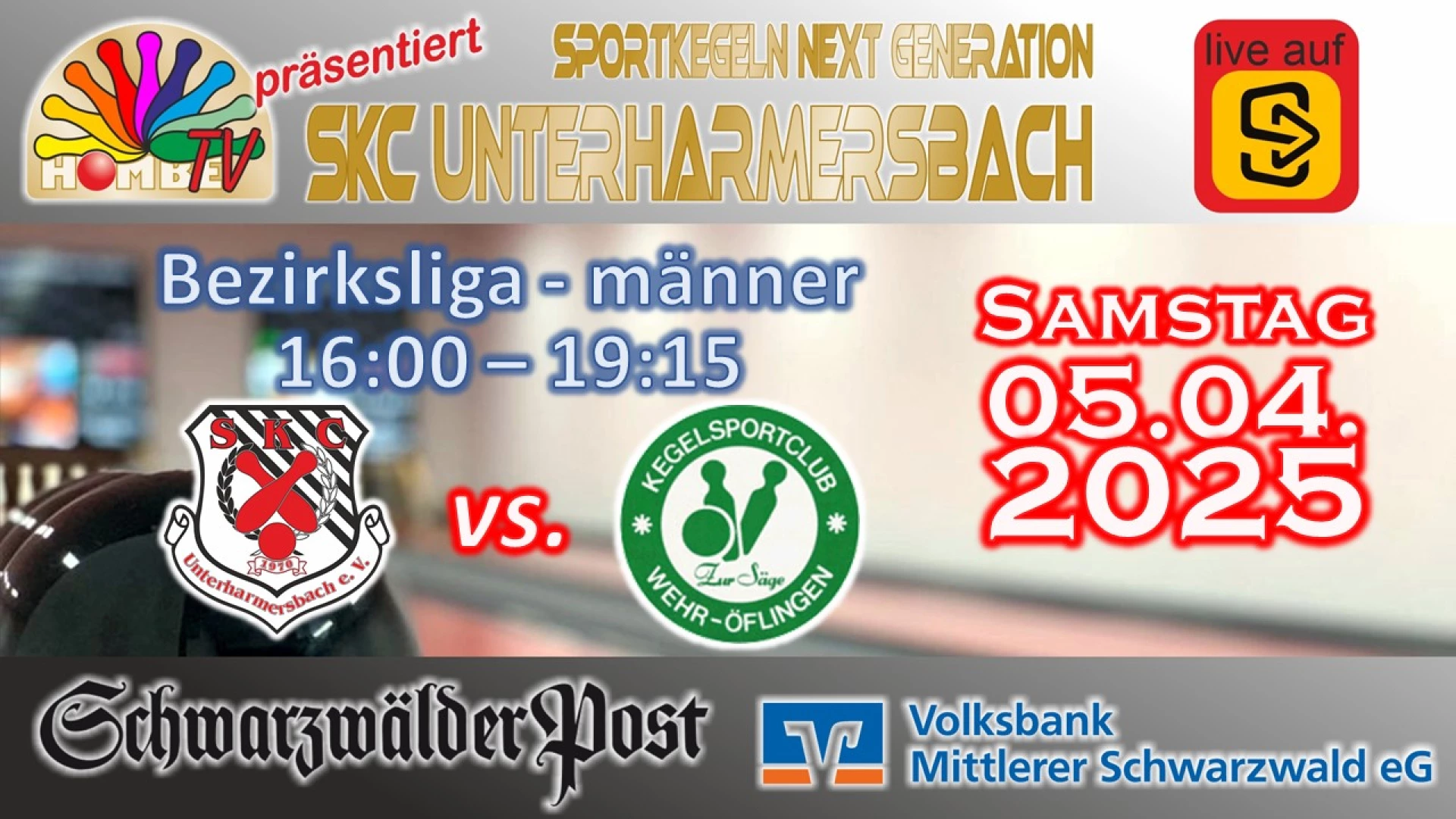 Sportkegeln - Wir übertragen am 05.04.2025 die Partie in der Bezirksliga aus dem Grünen Hof: 16:00 – 19:15 Uhr - Bezirksliga - Männer: SKC Unterharmersbach III - KSC Wehr Öfflingen II @skvs @landesliga-a-120-maenner @skc-unterharmersbach #sportkegeln-classic #unterharmersbach #zell-am-harmersbach #kegelnlebt