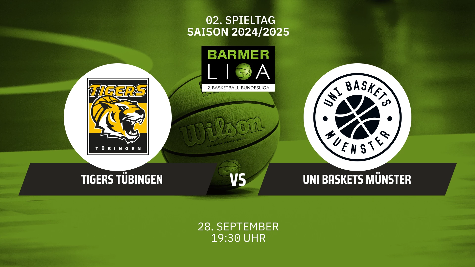 Video-Livestream des Basketballspiels Tigers Tübingen vs. Uni Baskets Münster aus der BARMER 2. Basketball Bundesliga vom 2. Spieltag am 28.09.2024. @barmer-2-basketball-bundesliga #basketball #proa #barmer2basketballbundesliga @tigers-tuebingen @uni-baskets-muenster