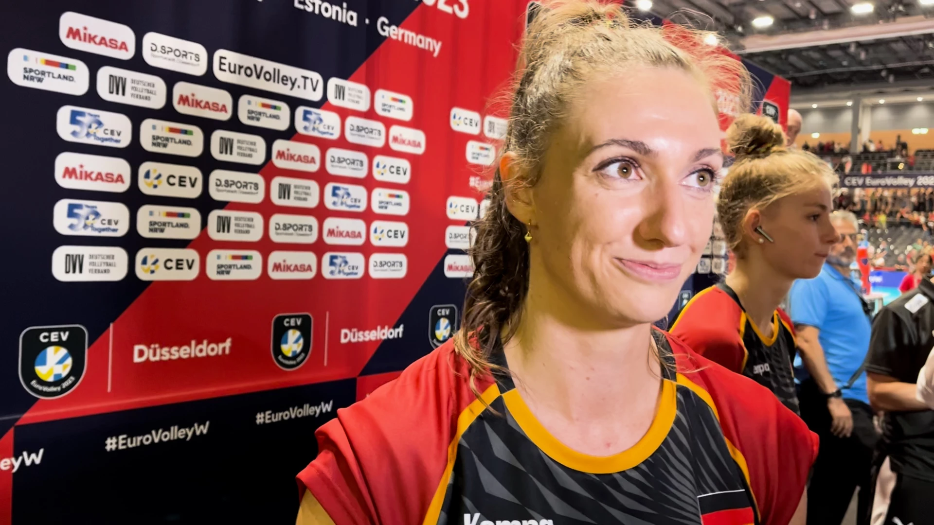 Interview mit DVV-Kapitänin Lena Stigrot nach dem Vorrundenspiel zwischen Deutschland und der Türkei im Rahmen der Volleyball-EM der Frauen 2023 am 24.08.2023. #eurovolley2023 #eurovolleywomen2023 #volleyballem2023 #volleyball