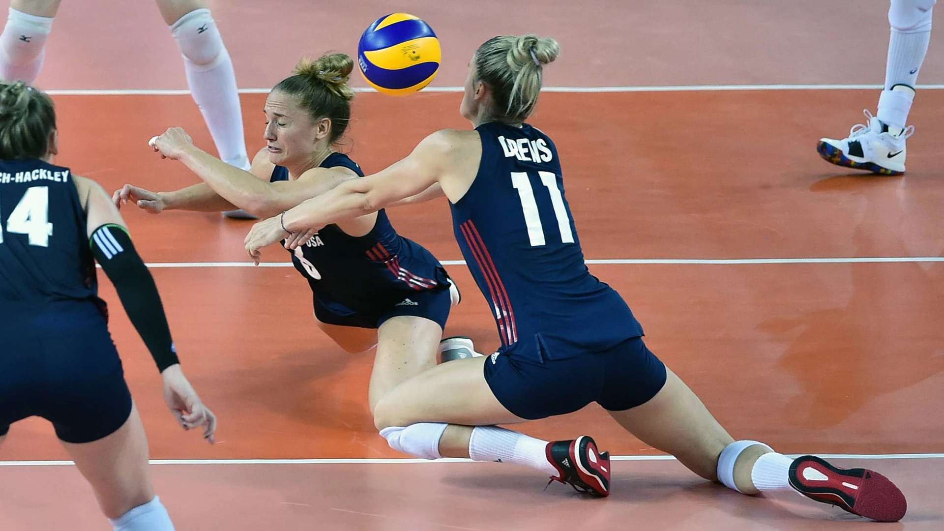 Was für ein Kampf um den ersten Satz in der Finalrunde der Volleyball Nations League der Frauen zwischen den USA und Serbien.