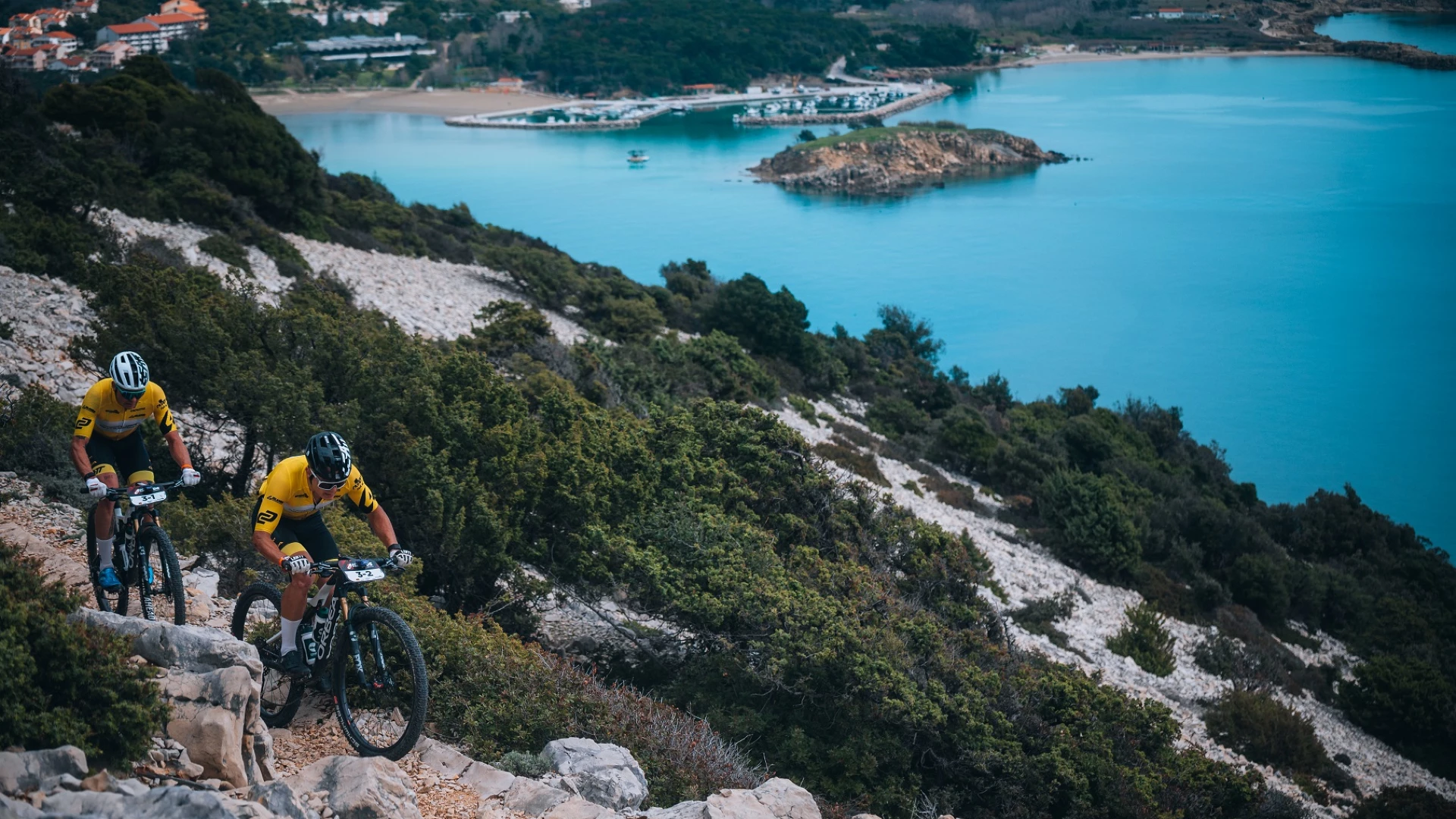 Stage 2 des 4Islands MTB Croatia begann mit einer Fahrt über die Adria in einer Fähre mit der Insel Rab als Ziel. Es ging über 76 Kilometer und 1300 Höhenmeter von Lopar in die Stadt Rab.Nachdem Becking und Drechou von BUFF MEGAMO im ersten Anstieg einen Platten hatten, war es ein eindeutiges Rennen für Orbea x Leatt x Speed Company. Bei noch zwei ausstehenden Etappen haben Orbea x Leatt x Speed Company einen Vorsprung von 8 Minuten und 45 Sekunden. Bei den Frauen stand ein neues Team ganz oben auf dem Treppchen: Alessia Nay und Liisa Ehrberg von Velohut/Veloflütsch gewannen die Etappe. Die Etappe war voller Dramatik, denn sportograf.com - Bike Aid MTB hatte am ersten Anstieg einen Reifenschaden, musste anhalten, den Reifen flicken und schließlich das gesamte Rad in der ersten technischen Zone wechseln. Doch das war noch nicht das Ende für das orangefarbene Team. Es gelang ihnen, Nay und Ehrberg bei der Einfahrt in die Stadt Rab einzuholen, bevor ihnen auf einer der vielen Stufen in den Straßen der Stadt die Kette abfiel. Nay und Ehrberg gelang es jedoch, die angreifenden Janas und Ames bis zum Ende aufzuhalten und den Etappensieg zu erringen.